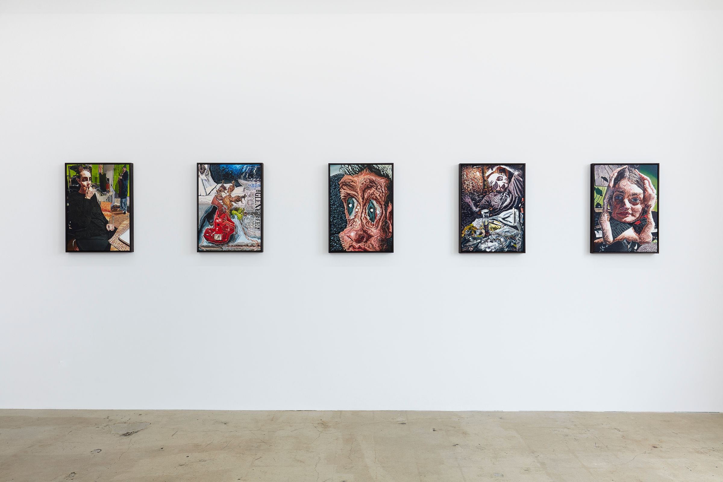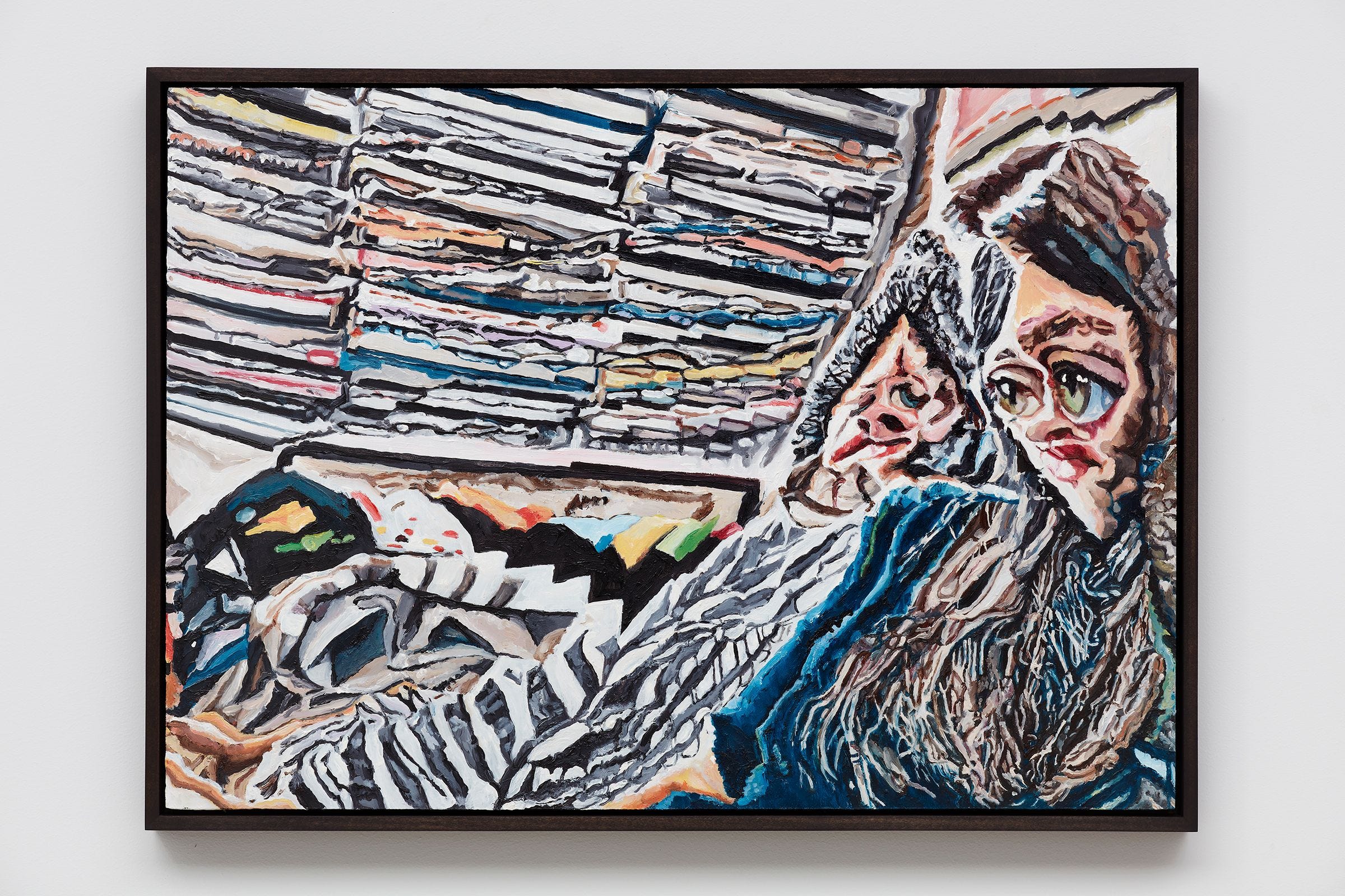 Maybe we could start by discussing Leanings, your current exhibition at Jenny’s in New York. This show, in a sense, strikes me as a continuation of your past two solo exhibitions, both in London – While My Paintbrush Gently Weeps at Leech, and The New Distortion at Le Bourgeois. Each predominantly features human figures, a high-contrast color scheme, and seems to arrive at the finished work through similar strategies. But I also wonder if my assessment is wrong – if the stylistic continuity across these three shows, which hasn’t always been a given in your practice, occludes important differences among them. I know, for instance, that this body of paintings took some time to come together, which might suggest that it is, in fact, distinct – that there was a relation to be worked out among the paintings on view. Or it might only suggest that these works are time-consuming to execute, which is certainly true for many artists, and for many painters in particular. Perhaps you could speak to this a little bit, and also to the concerns of this show specifically.